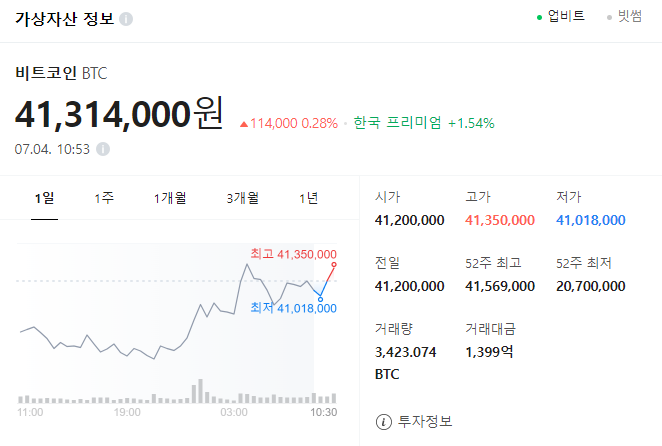 4000만원은 저항대가 심한 구간이라 더 뚫진 못하고