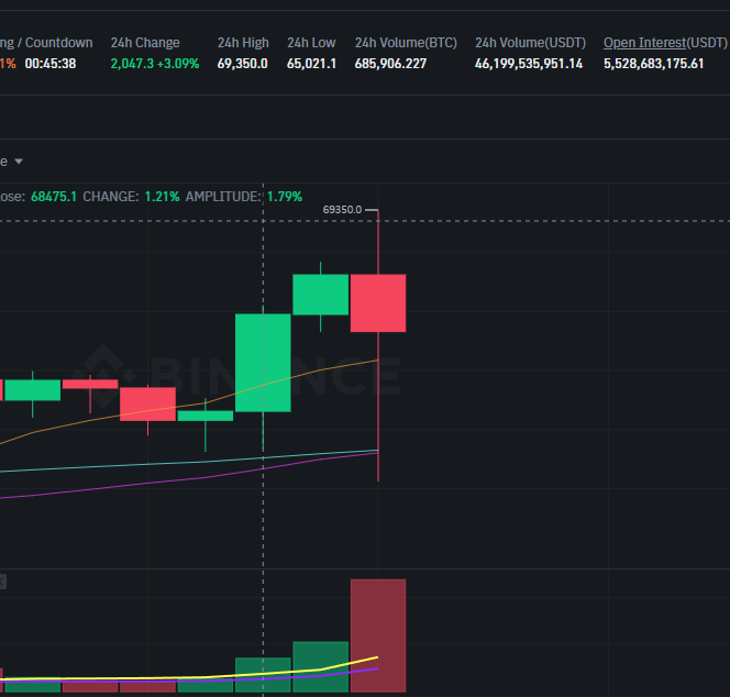비트코인 바이낸스 기준 신고가 찍음.