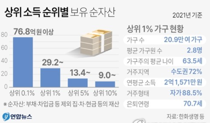 우리나라 상위 1%의 순자산은 얼마일까요