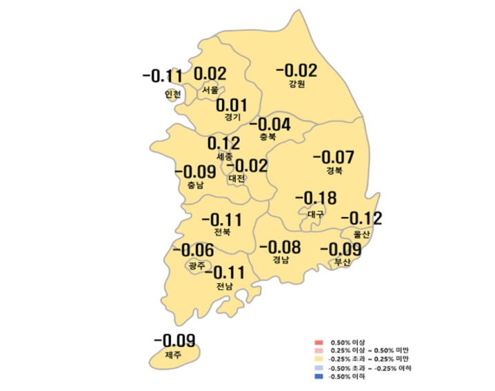 전세가격도 많이 떨어졌지만 저번 주부터 플러스로 전환되었다고 합니다.